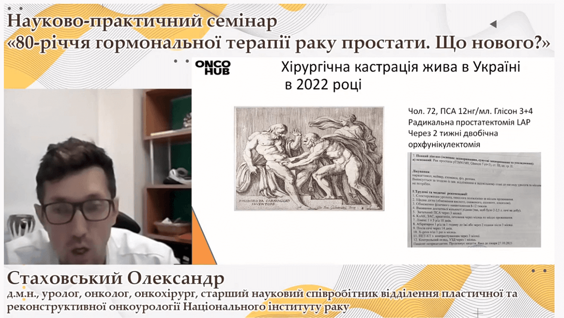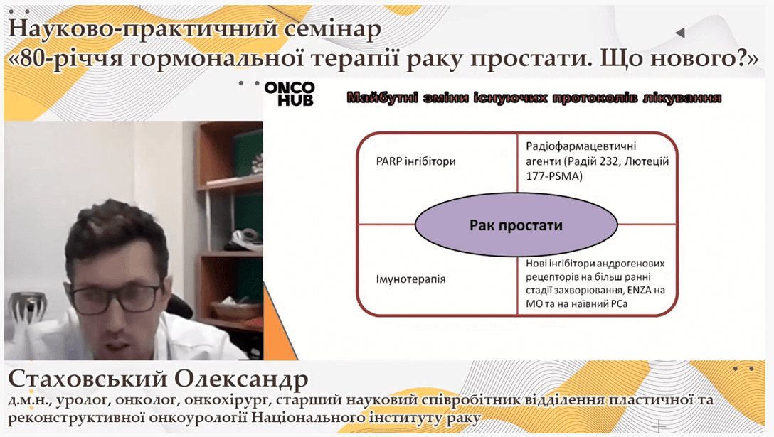 Вебінар проводився з метою підвищення рівня професіоналізму практикуючих спеціалістів в галузі лікування раку передміхурової залози. Під час вебінару ми розглядали нові можливості в лікуванні раку передміхурової залози, розбирали з колегами цікаві клінічні кейси.
