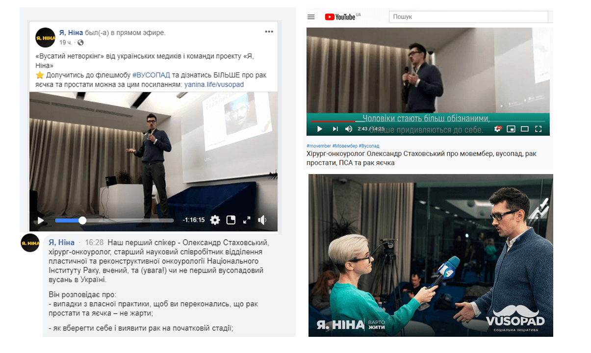 ОК Роздрукувати карту проїзда25 листопада 2019 відбувся «Вусатий нетворкінг» від українських медиків і команди проекту «Я, Ніна». На зустрічі ми спілкувалися про наступне: випадки з власної практики, щоб переконатися, що рак простати та яєчка – не жарти; як вберегти себе і виявити рак на початковій стадії; про ідею започаткування руху #movember в Україні, її втілення та власні перші вуса.