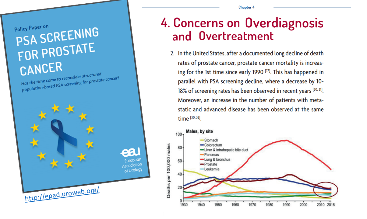 Багато спеціалістів поєднують ці два факти, хтось може дискутувати, але останні рекомендації USPSTF вже пом’якшили відношення до тестування ПСА і скринінгу раку простати загалом. Сьогодні за умови виявлення індолентної форми раку простати (захворювання лікування якого може призвести до більшої шкоди ніж сама пухлина) з пацієнтом оговорюють протокол активного спостереження (що це таке можна переглянути за лінком) Перевага такого підходу в тому, що він не знижує якість життя таких пацієнтів. І лише за умови клінічно значимої пухлини рекомендоване активне лікування сучасними методами.