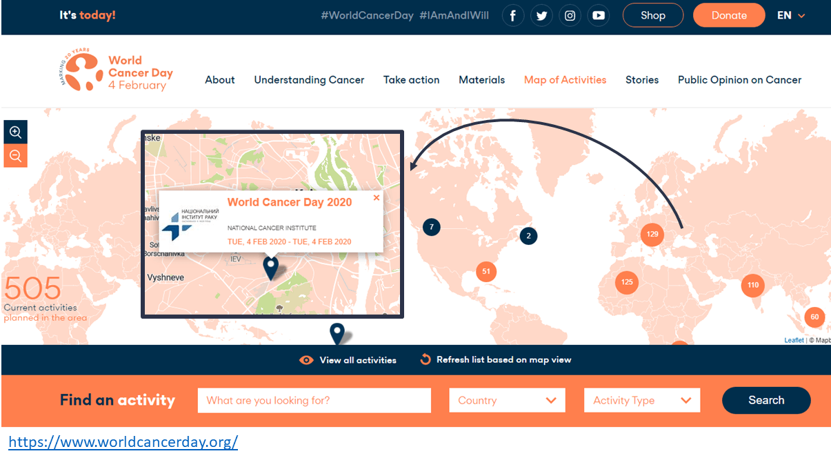 ОК Роздрукувати карту проїздаЩорічно 4 лютого відзначають Всесвітній день боротьби з раком #WorldCancerDay, з ініціативи Union for International Cancer Control (UICC) з 2000 року. Офіційний сайт https://www.worldcancerday.org/