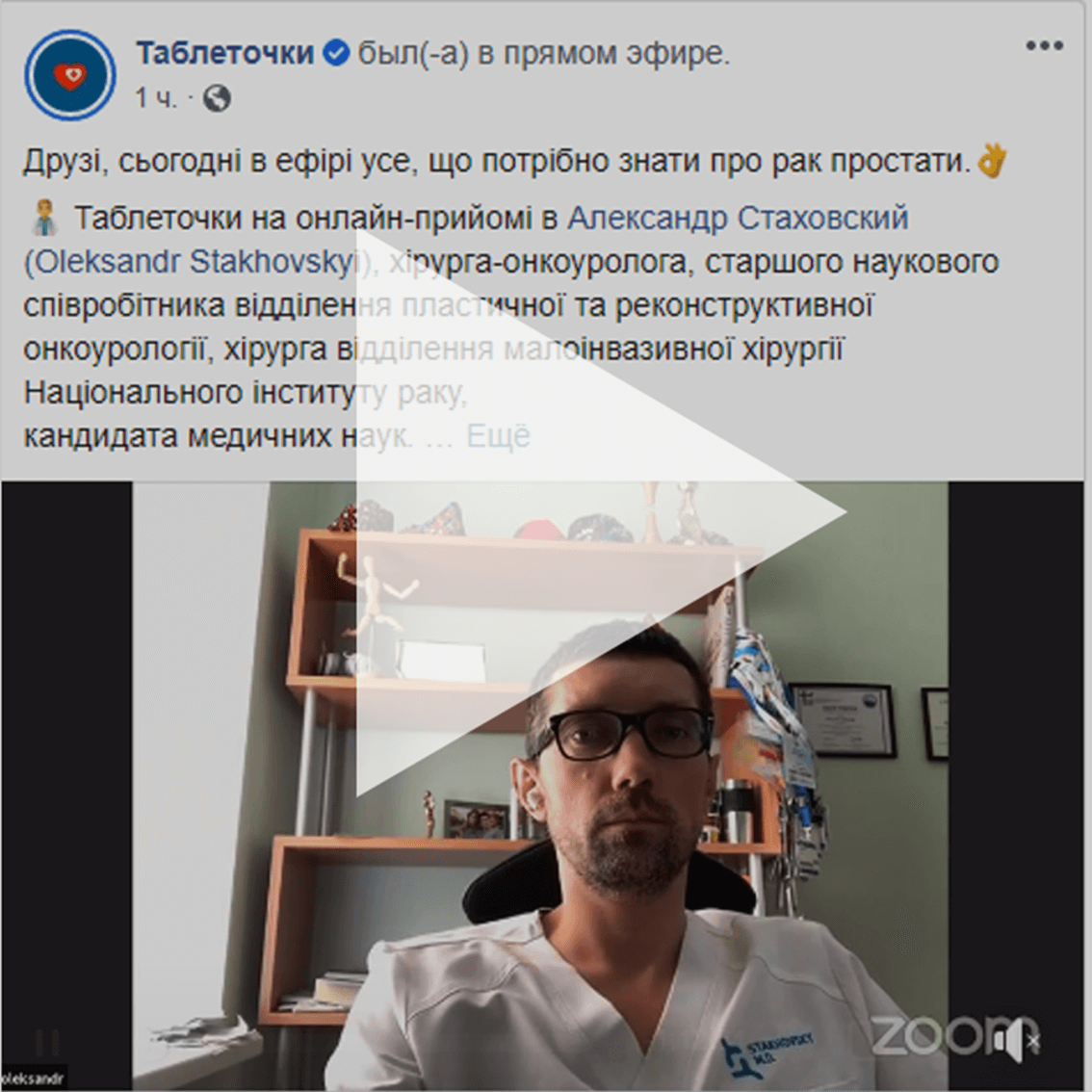 ОК Роздрукувати карту проїздаУ прямому ефірі на Фейсбук сторінці Благодійного фонду «Таблеточки» лікар-онкоуролог Олександр Стаховський пояснив усе, що потрібно знати про рак простати, а також відповів на запитання аудиторії.