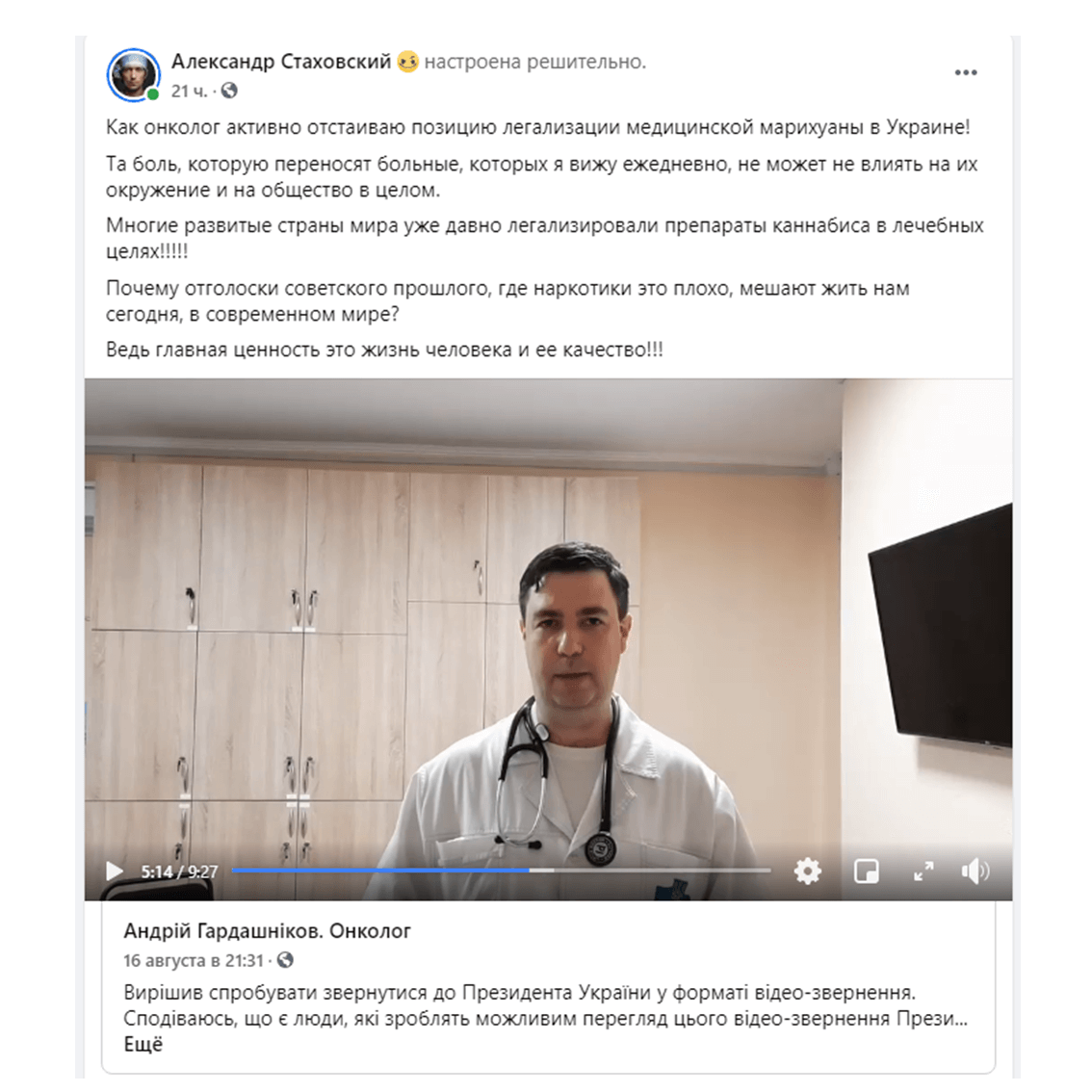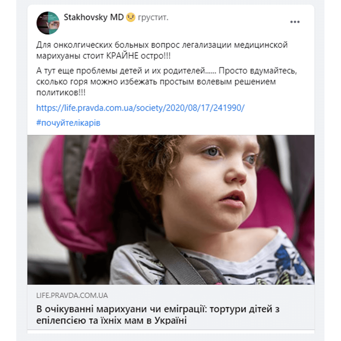 ОК Роздрукувати карту проїздаЯк онколог активно відстоюю позицію легалізації медичної марихуани в Україні! Та біль, яку переносять хворі, яких я бачу щодня, не може не впливати на їх оточення і на суспільство в цілому. Багато розвинених країн світу вже давно легалізували препарати канабісу в лікувальних цілях! Чому відлуння радянського минулого, де наркотики це погано, заважають жити нам сьогодні, в сучасному світі? Адже головна цінність це життя людини і її якість! Сьогодні говоримо про наркотики в медицині. Адже для онкологічних хворих в Україні питання легалізації медичної марихуани стоїть вкрай гостро!